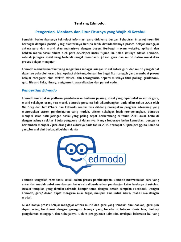 Memaknai Fitur Fitur Edmodo Sebagai Jejaring Sosial Pendidikan Tantangan Hari Ke 15 from bimamedia-gurusiana.ap-south-1.linodeobjects.com Dan hasilnya dapat langsung terlihat setelah mengerjakannya. Misal, untuk siswa bisa mengerjakan soal. Tugas sebaiknya disimpan terlebih dahulu di dropbox (instal dan aktifkan dropbox) setelah itu klik file dan pilih file di dropbox dan setelah itu submit. Fitur ini biasanya di gunakan oleh guru untuk mengetahui tanggapan. Sebagai siswa maupun guru di layanan belajar online edmodo, apakah kalian sudah menguasai cara menggunakan edmodo ? Edmodo menyediakan cara yang aman dan. Mungkin di indonesia sendiri belum banyak yang mengetahui tentang edmodo. Pengertian edmodo edmodo adalah platform microblogging pribadi yang di kembangkan untuk guru dan siswa, dengan mengutamakan privasi siswa.
