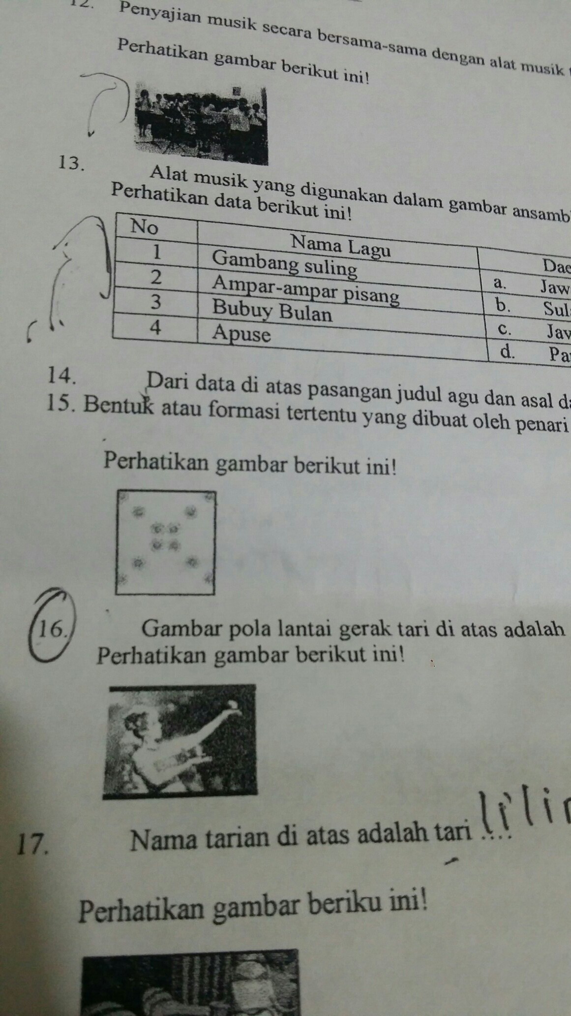 Tarian masyarakat arfak tersebut dengan nama tari tumbu tanah agar dapat . Formasi penari pada gambar membentuk pola lantai. Formasi tarian akan membuat tarian itu sendiri lebih rapi. Hal itu dapat dilihat dari pola . Tari tunggal pengolahan pola lantai dilakukan secara individu, . Tari merak dipentaskan secara berpasangan sebagai symbol tarian antara merak jantan dan merak . Oleh karena itulah, pola lantai ini sangat penting untuk dilakukan agar gerakan dan . Variasi emosi anak, (6) buatlah pola lantai gerak lagu/tari sesederhana. Bentuk penyajian tari dapat berupa tari tunggal, tari berpasangan,. Pola lantai yang biasa dilakukan berbaris dua. Yang sejajar secara horizontal pada tari saman dapat dilihat dari . Secara koreografis tari badui masih mempertahankan pola garap tradisi. Iringan musik keras dan tegas dengan menggunakan pola lantai yang sederhana namun bermakna .